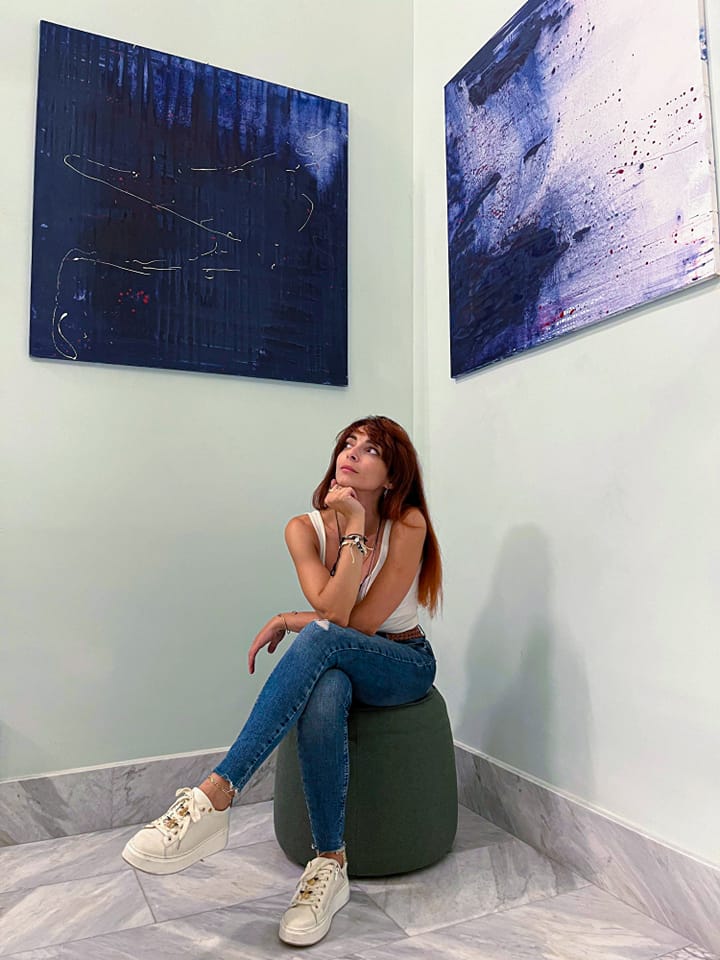 Esordisce come pittrice nel Dicembre 2016, presso la Fondazione Palmieri di Lecce con una personale dal titolo “Vibrazioni dell’Anima”, a cura dell’Avv. Claudio Casalini che nota i suoi quadri e se ne innamora. Esattamente un anno dopo inaugura la sua terza personale a Venezia a cura di Maria Palladino e Alessandro Bellotto, con Tanis Root United Arts. Nell’estate del 2017, presenta invece, la sua seconda personale di pittura, presso il chiostro del palazzo comunale di S. Giovanni Rotondo (Fg), una mostra che ha amato particolarmente; un’esposizione a tema, contro la violenza sulle donne, dal titolo “Il Giorno di Eva”, il cui vernissage si è svolto proprio durante la nota manifestazione di lotta alla violenza sulle donne, “La Notte Rosa”. Nel Maggio 2022, espone la sua quarta personale, a cura di Ilaria Caravaglio, nell’area archeologica di Valesio (Br), all’interno del Progetto del Polo Messapia, “Valesio Oltre i Confini”.